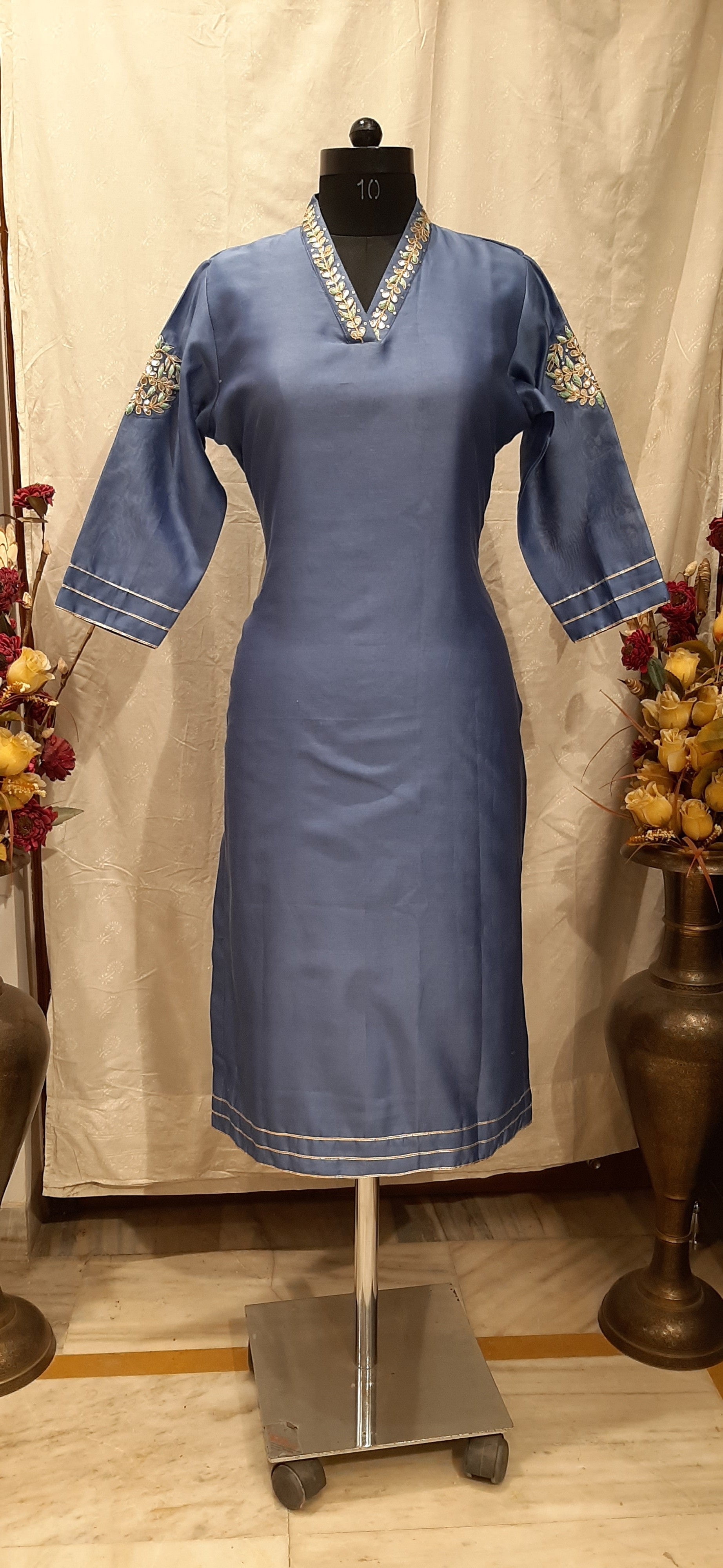 Blue Chanderi Silk Kurta Sharara Set: Indian Wedding Outfit
