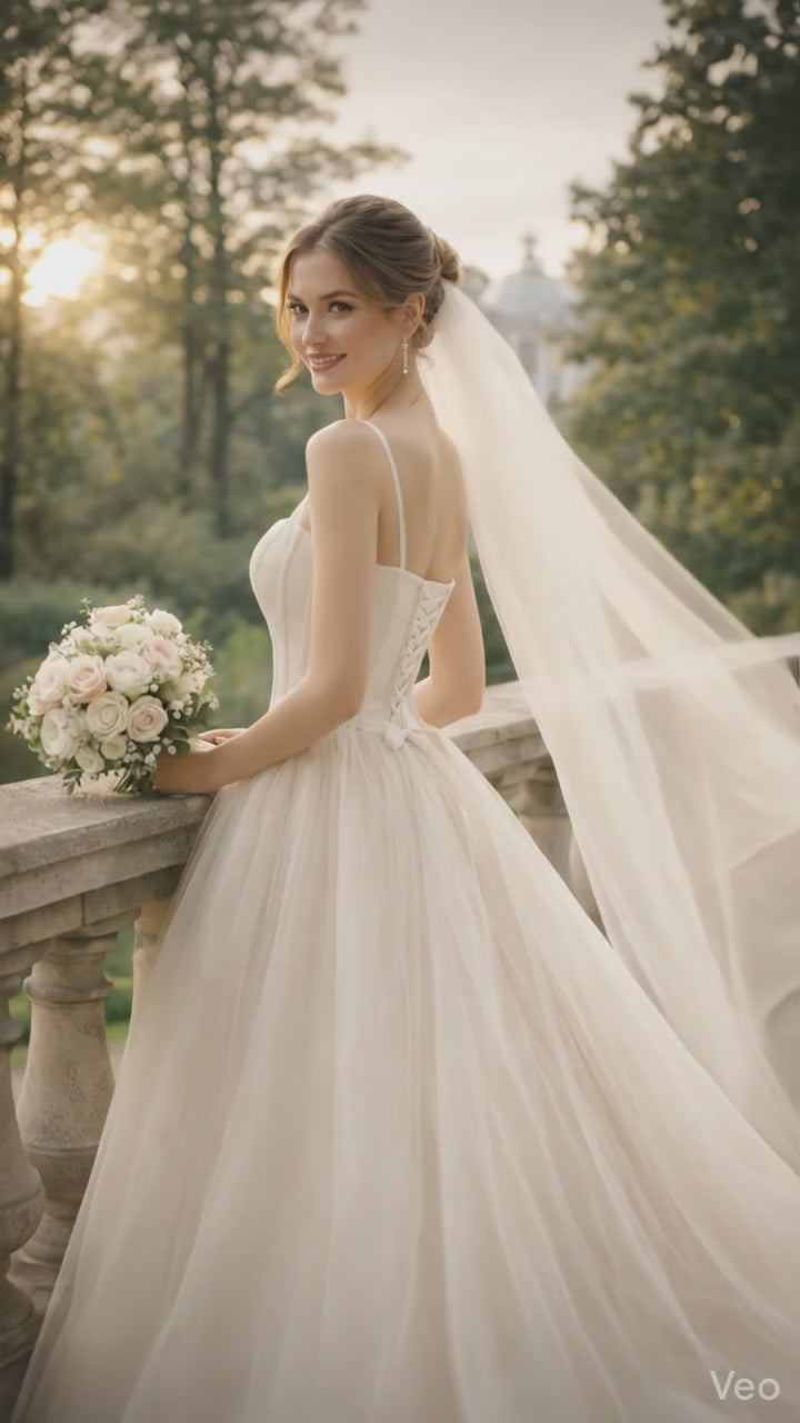 Elegant Ivory Western Wedding Gown for Women – Strapless Bridal Dress with Flowing Train
