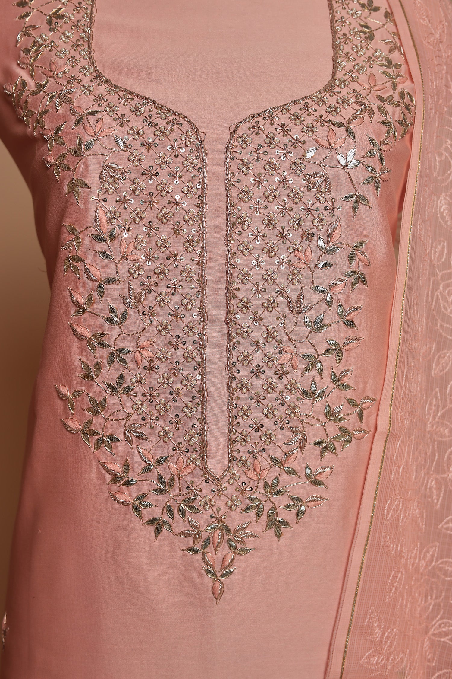 Elevate your wardrobe with our Designer Pure Silk Unstitched Suits, the epitome of sophisticated traditional wear. Crafted from Premium Silk/Chanderi, these suits are ideal for Weddings, Festive gatherings, and upscale Parties.