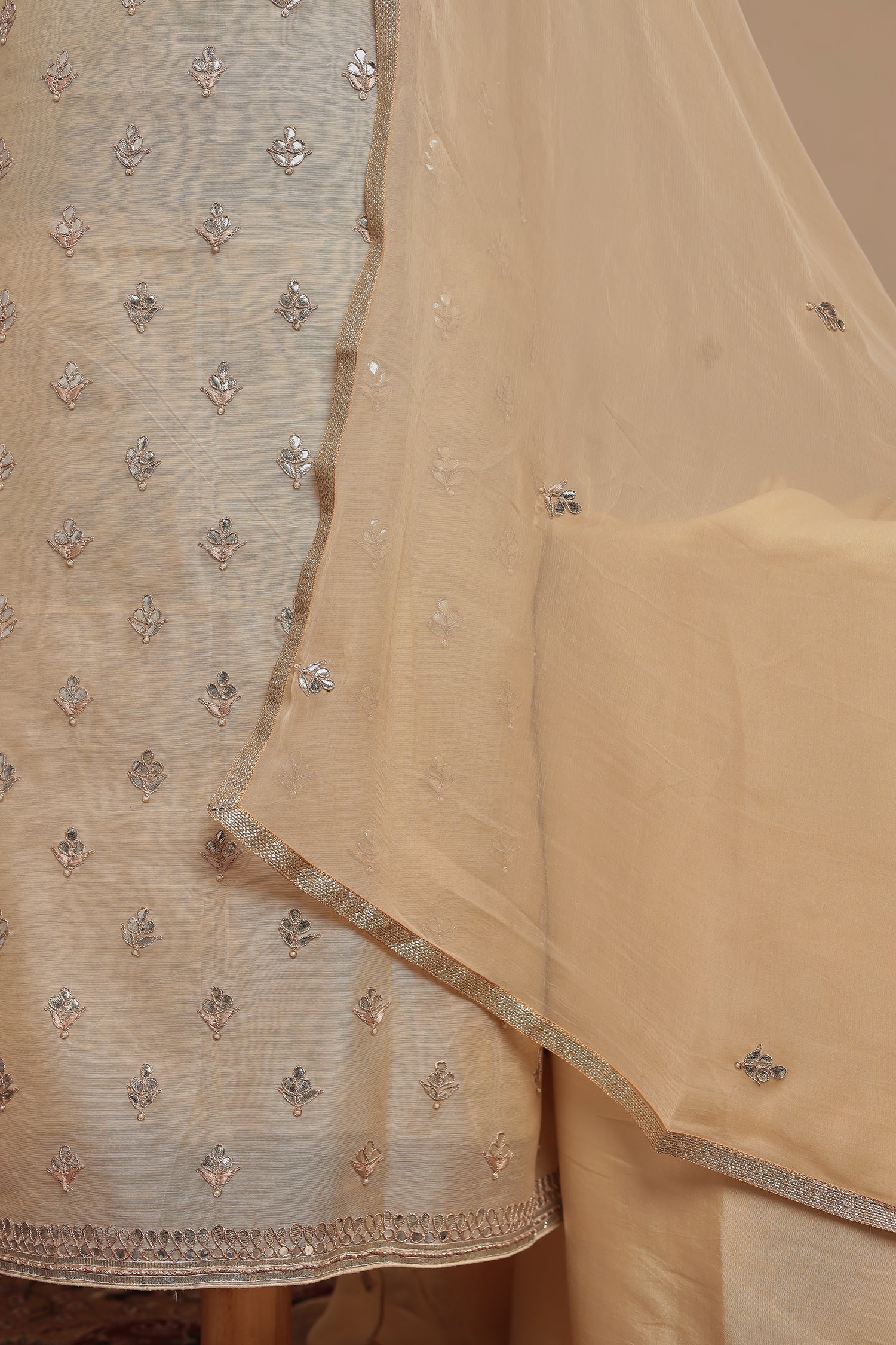 Elegant Ivory/Cream Unstitched Suit Set with Silver Gota Work & Dupatta | Luxurious Festive & Party Wear Salwar Kameez Material