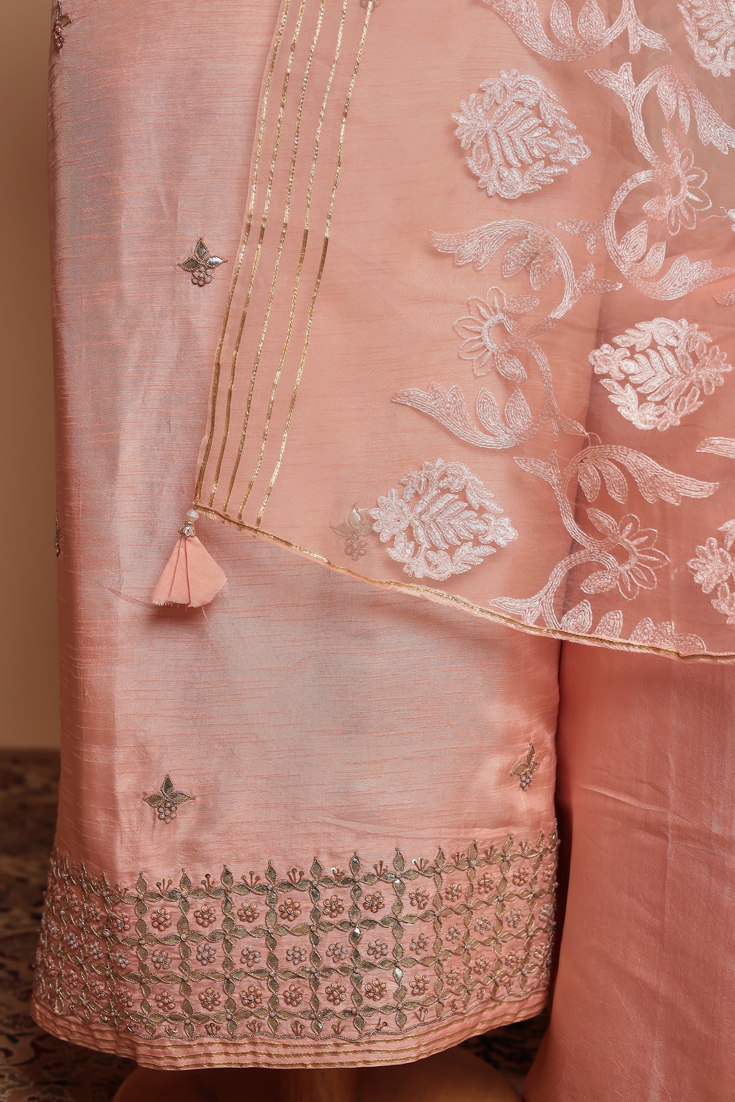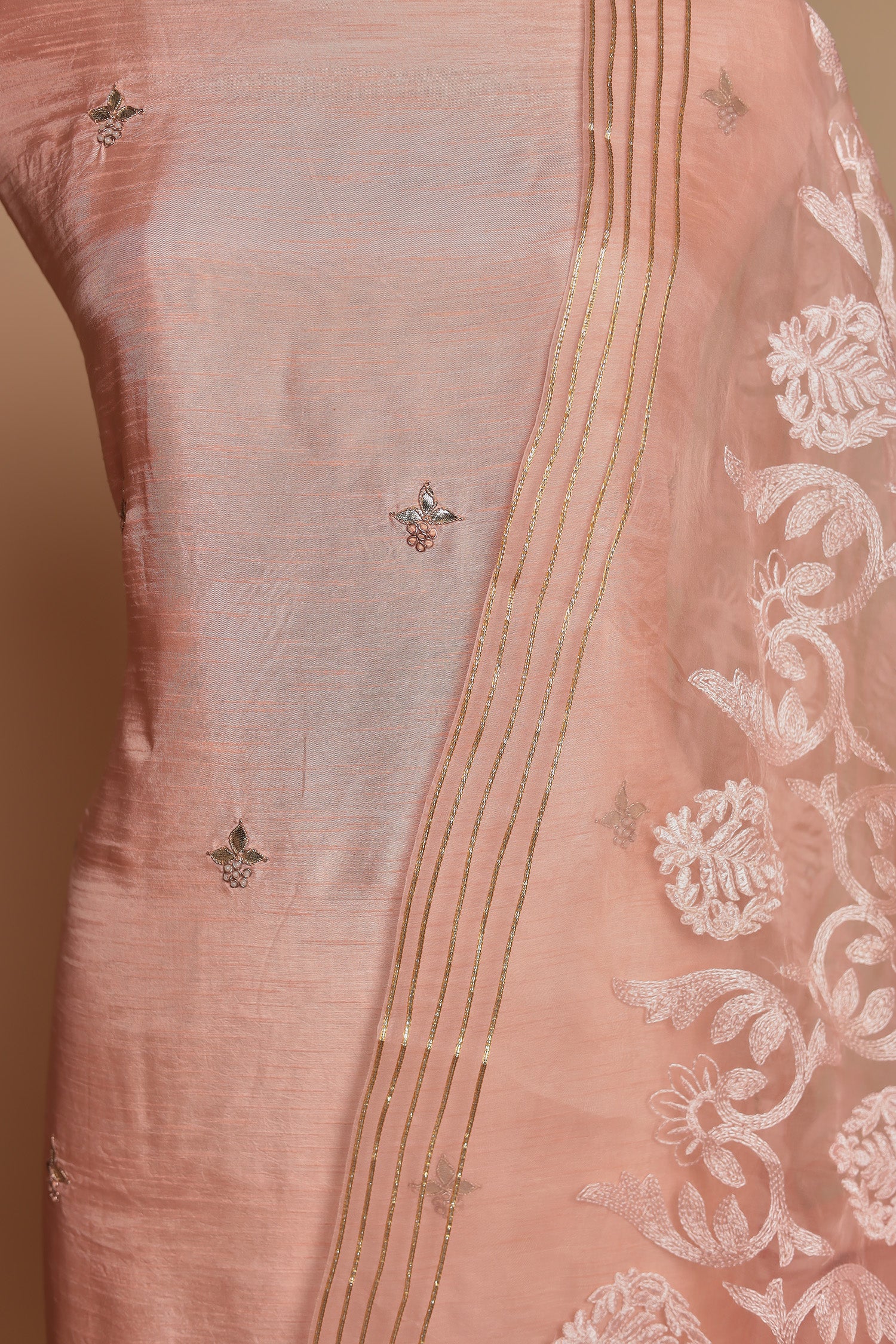 Elegant Peach Unstitched 3 Piece Suit Set with Embroidered Dupatta