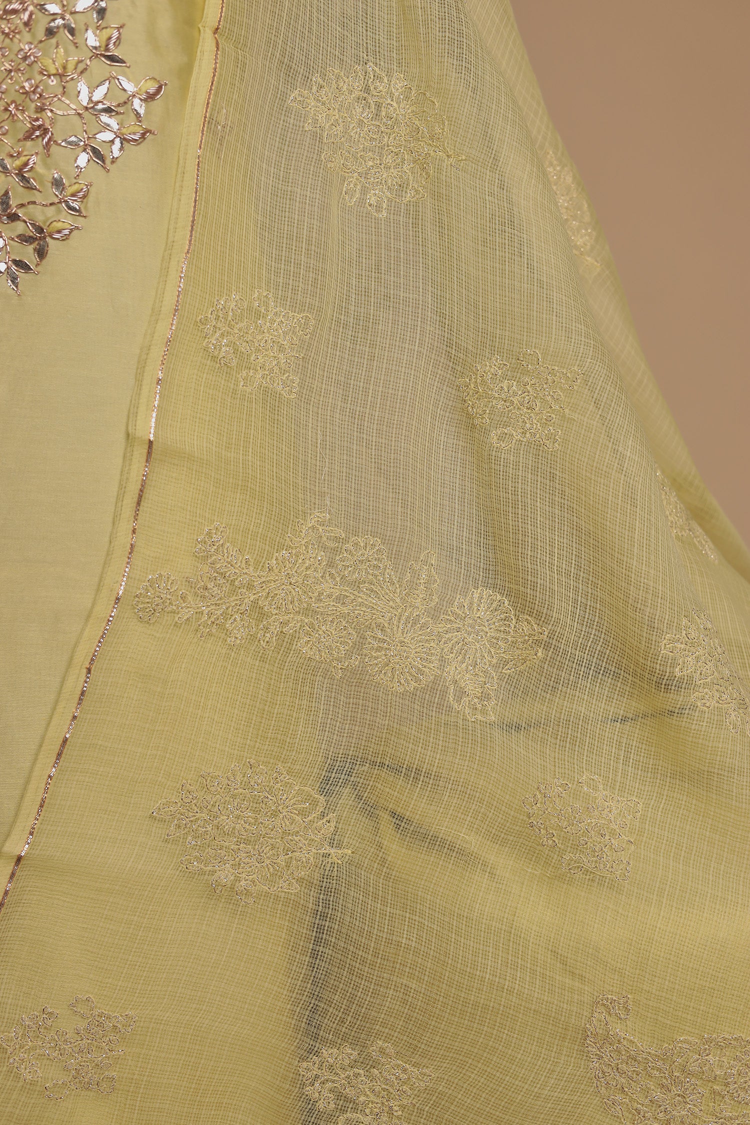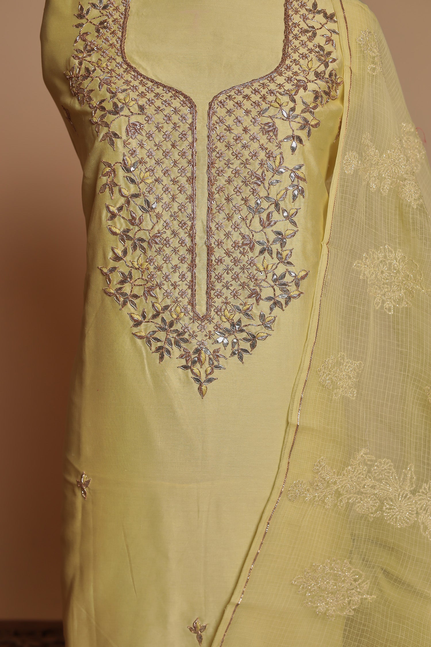 Elegant Sage Green Pure Silk Unstitched Suit with Heavy Zari Work Neckline