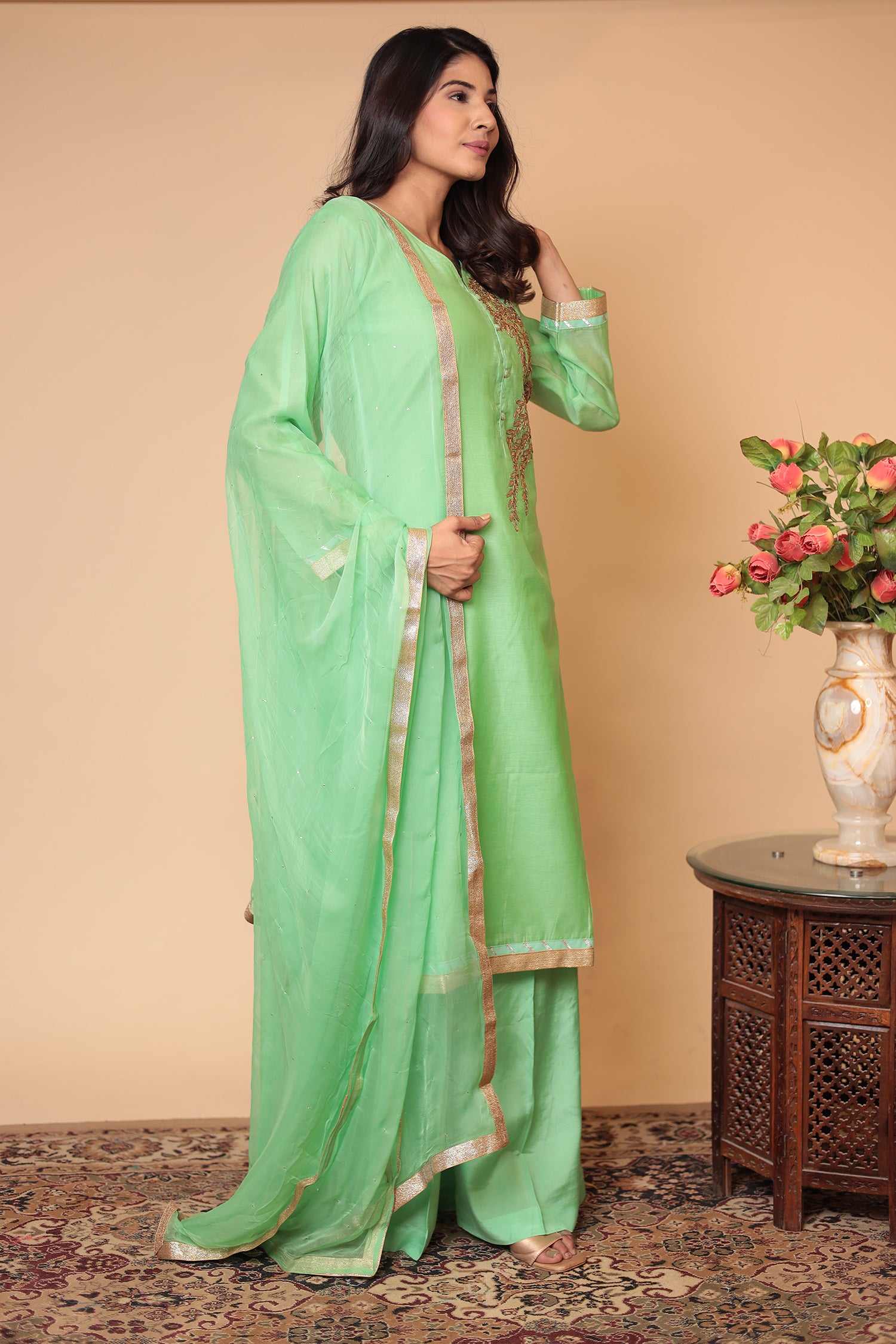 Green Chanderi Silk Embroidered Sharara Set: Traditional Indian Outfit