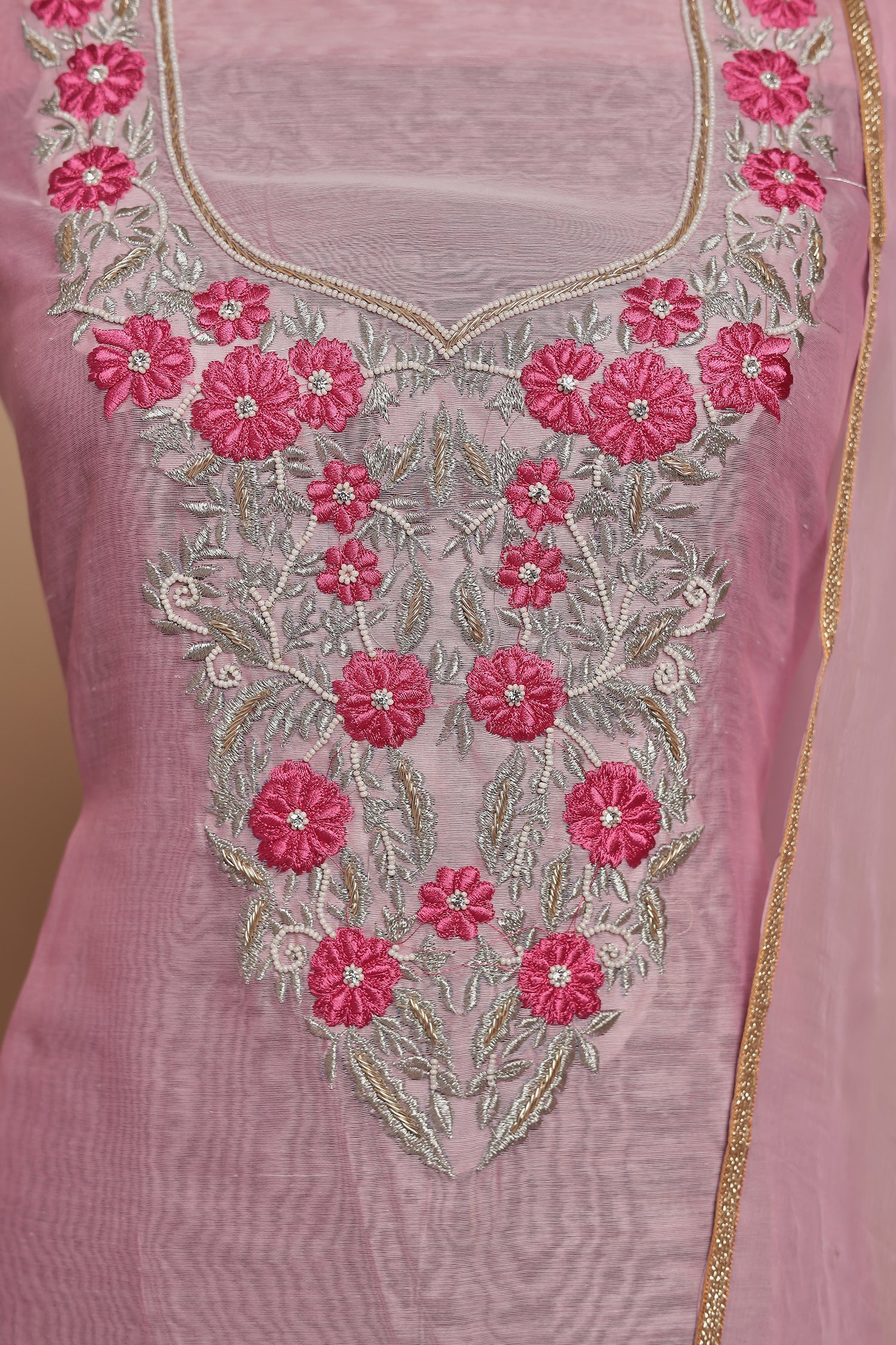Luxurious Pink Chanderi Dress Material for Women | Festive Salwar Suit with Zari Work