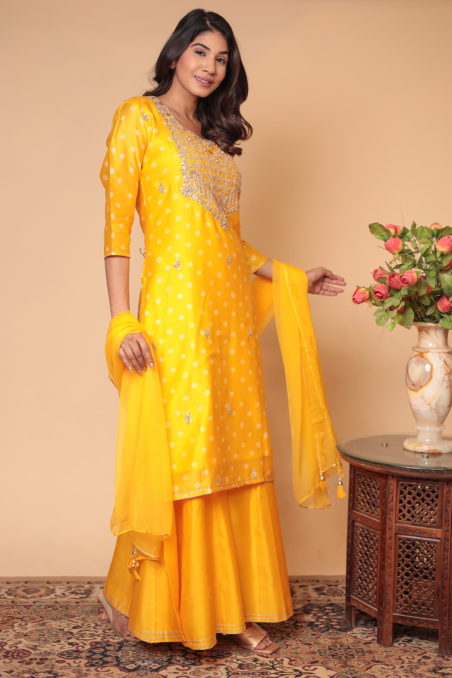 Yellow Chanderi Silk Sharara Set: Zardozi Work Indian Outfit